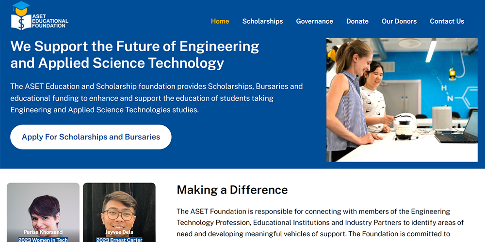 The ASET Education and Scholarship foundation provides Scholarships, Bursaries and educational funding to enhance and support the education of students taking Engineering and Applied Science Technologies studies.
