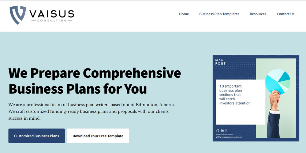 Vaisus Consulting is a professional team of business plan writers based in Edmonton, Alberta that crafts customized funding-ready business plans and proposals with its clients success in mind